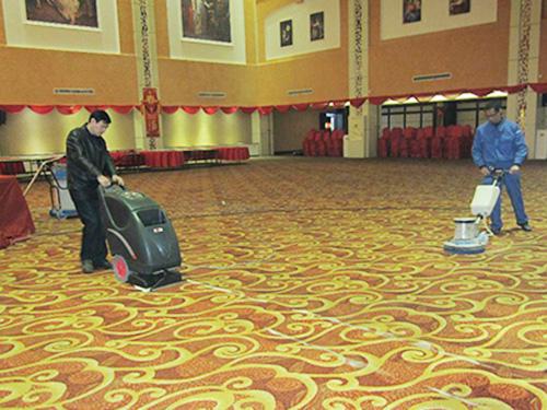 4、選用地毯抽洗機,操作向后行走而使每操作行有一部分重疊,最少經過兩次抽洗;